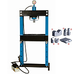 Усилие 50 тонн. Пресс пневмогидравлический — для увеличения скорости работы, где есть поток по выпрессовки, ручной привод — для точного дозирования усилия ответственных деталей. Рабочее окно для работы с крупногабаритными деталями 690х1010 мм. Насос — 2 плунжера. Лебёдка для подъёма/опускания каретки. Манометр. Рекомендуется для выпрессовки подшипников, сайлентблоков, втулок, шарниров и т.п. в автосервисе. Доставка по РФ и ТС. Гарантия 12 мес.