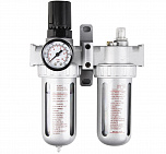 Регулятор давления воздуха с лубрикатором, влагоотделителем и манометром 1/4”. Пропускная способность – 700 л/мин. Давление компрессора
