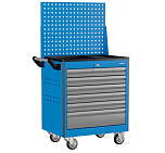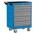 6 ящиков. Нагрузка на тележку 220кг. Корпус тележки сварной. Тележка оснащена системой антиопрокидывания новой конструкции, которая блокирует открывание ящиков. На боковых стенках корпуса выполнена квадратная перфорация для установки крючков, держателей и других аксессуаров. Ящики на шариковых телескопических направляющих полного выдвижения. Обеспечен свободный и плавный ход ящиков даже при полной загрузке. Габаритные размеры тележки с учетом колес, лотка и ручки (ВхШхГ), не более: 950x780x490 мм. Вес: 52 кг.
