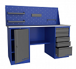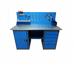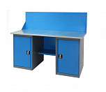 Двухтумбовый. Допустимая нагрузка на столешницу 1000 кг. Опорные элементы выполнены сварными из холоднокатаной стали. Для выполнения сборочных, ремонтных, слесарных, монтажных и других видов работ на производстве, в сервисных центрах, мастерских, гаражах, а также для обучения технологии в учебных заведениях. Комплектуется полкой-стенкой, расположенной под столешницей для удобного размещения габаритного инструмента и оснастки. Размеры верстака: 855x1596x696 мм. Вес: 121 кг. Поставляется в 4 комплектациях на выбор.