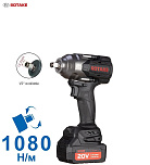 Гарантия 12 мес. Ударный. Профессиональный. До 1080Нм. 3 скорости. Реверс. Квадрат 1/2". Белый светодиод подсветки. Индикатор заряда. 20В. (2х4Ач аккумулятора РАЗМЕР БОЛЬШЕ — ПРОСЛУЖИТ ДОЛЬШЕ!), кейс и зарядное устройство в комплекте. Бесщеточный двигатель. Антивибрационная ручка. Для слесарных работ и шиномонтажа.