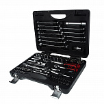 Набор инструментов в чемодане 1/4" & 3/8" & 1/2" 6-гранный 123 предмета. В кейсе: головки ММ 1/4", головки IN 1/4", головки 3/8", головки 1/2", головки глубокие 1/4", головки глубокие 3/8", головки глубокие: 1/2", головки с насадкой TORX 1/4", головки с насадкой TORX 3/8", головки с насадкой TORX 1/4", головки с насадкой TORX 3/8", головки с насадкой HEX 1/4", головки с насадкой PH 1/4", головки с насадкой SL 1/4", удлинитель 1/4", 3/8", 1/2", головки для свечей зажигания 3/8", трещотка: 1/4", 3/8", 1/2", карданные переходники 1/4", 3/8", 1/2", вороток с шарниром 1/2", адаптер: 3/8" и 1/2", ключи комбинированные.