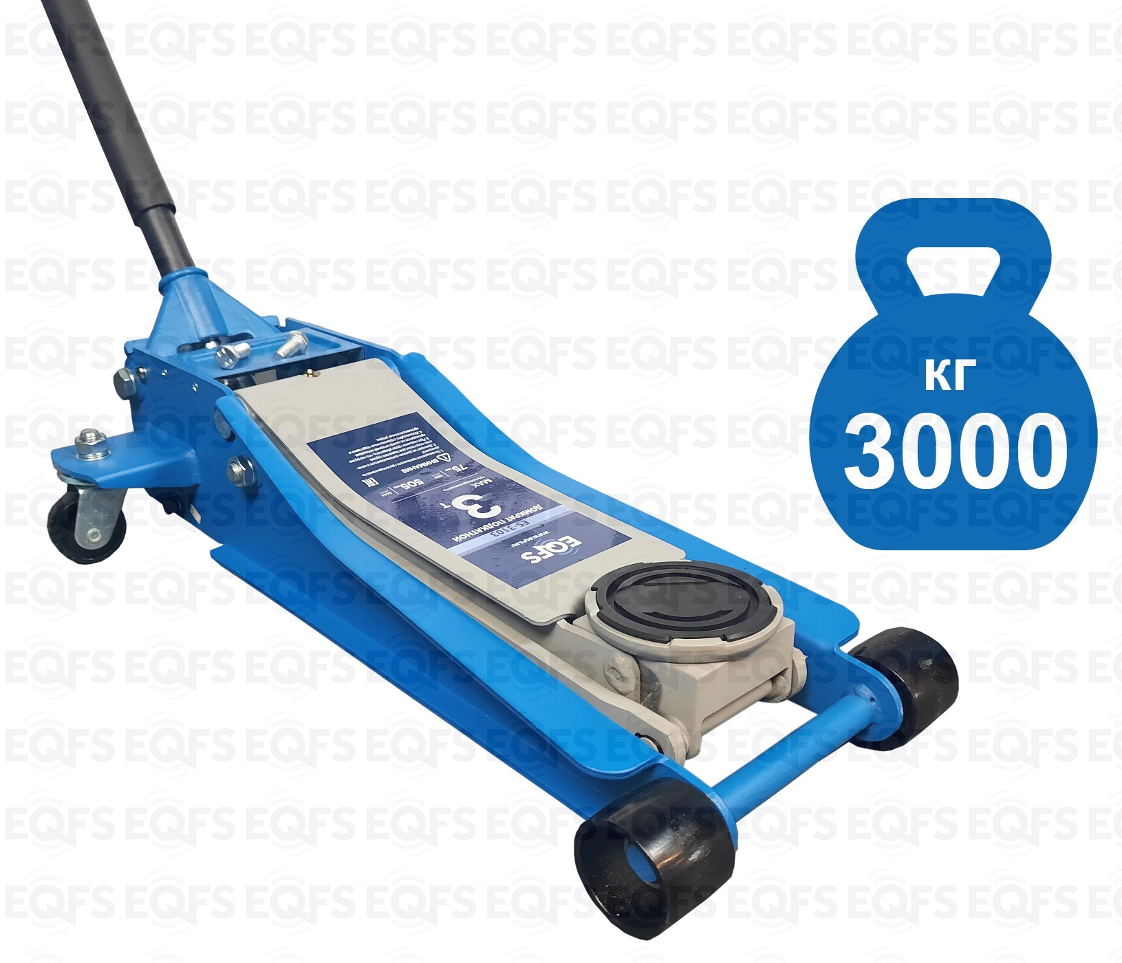 ES-3103 Домкрат подкатной низкопрофильный 3т. Гарантия 1 год. Профессиональный. Для интенсивной эксплуатации. 7 качков для поднятия на макс высоту. Подкатной. Низкопрофильный. Двухштоковый механизм. Усиленная конструкция. Быстрый подъем. Имеет повышенную износостойкость. Поворотная ручка, тавотница, лоток для хранения и резиновая накладка на чашку домкрата в комплекте. Грузоподъемность 3 тонны с усиленными ребрами жесткости.  Высота подъема мин / макс - 75-505 мм. ВЕС - 34,5 кг.