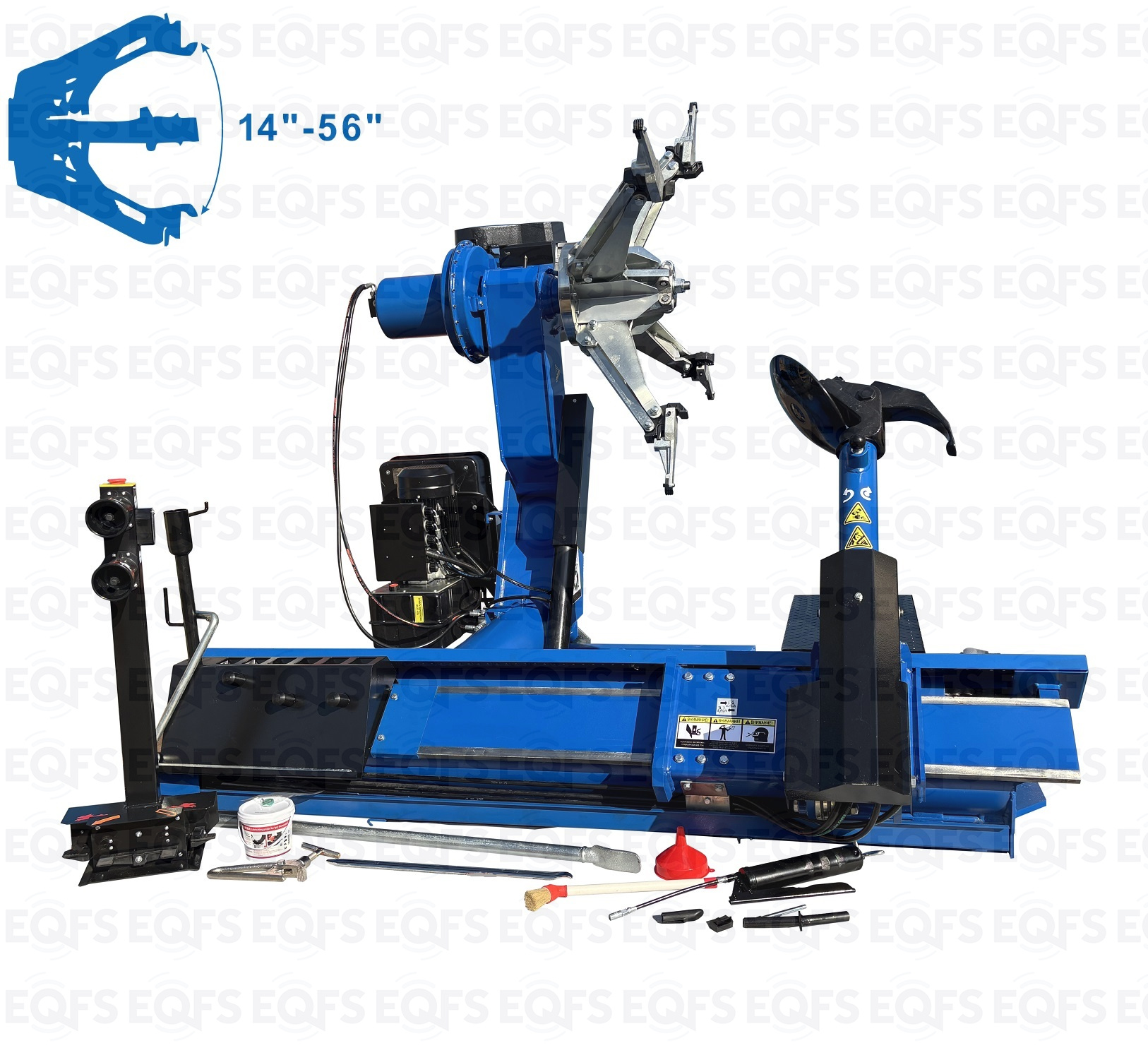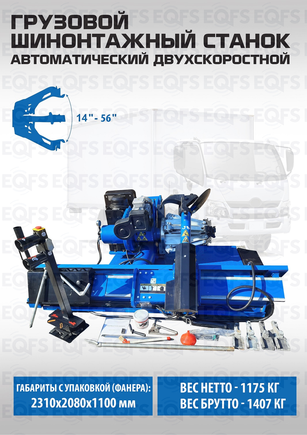 Комплект ES-56D грузовой шиномонтажный станок класса «премиум» для «жестких» условий эксплуатации. Диски алюминий и сталь сталь, с кольцом и без диаметром 14-56". Размер покрышки 2500х1200мм, масса до 2000кг. Двухскоростной автомат. Моторы 3 + 4 кВт. Гидравлический насос – Германия «BUCHER HIDRAULICS». Специально сконструирован для монтажа/демонтажа колес грузовых фур, тракторов, комбайнов, строительной и карьерной техники. Гарантия до 18 месяцев.
