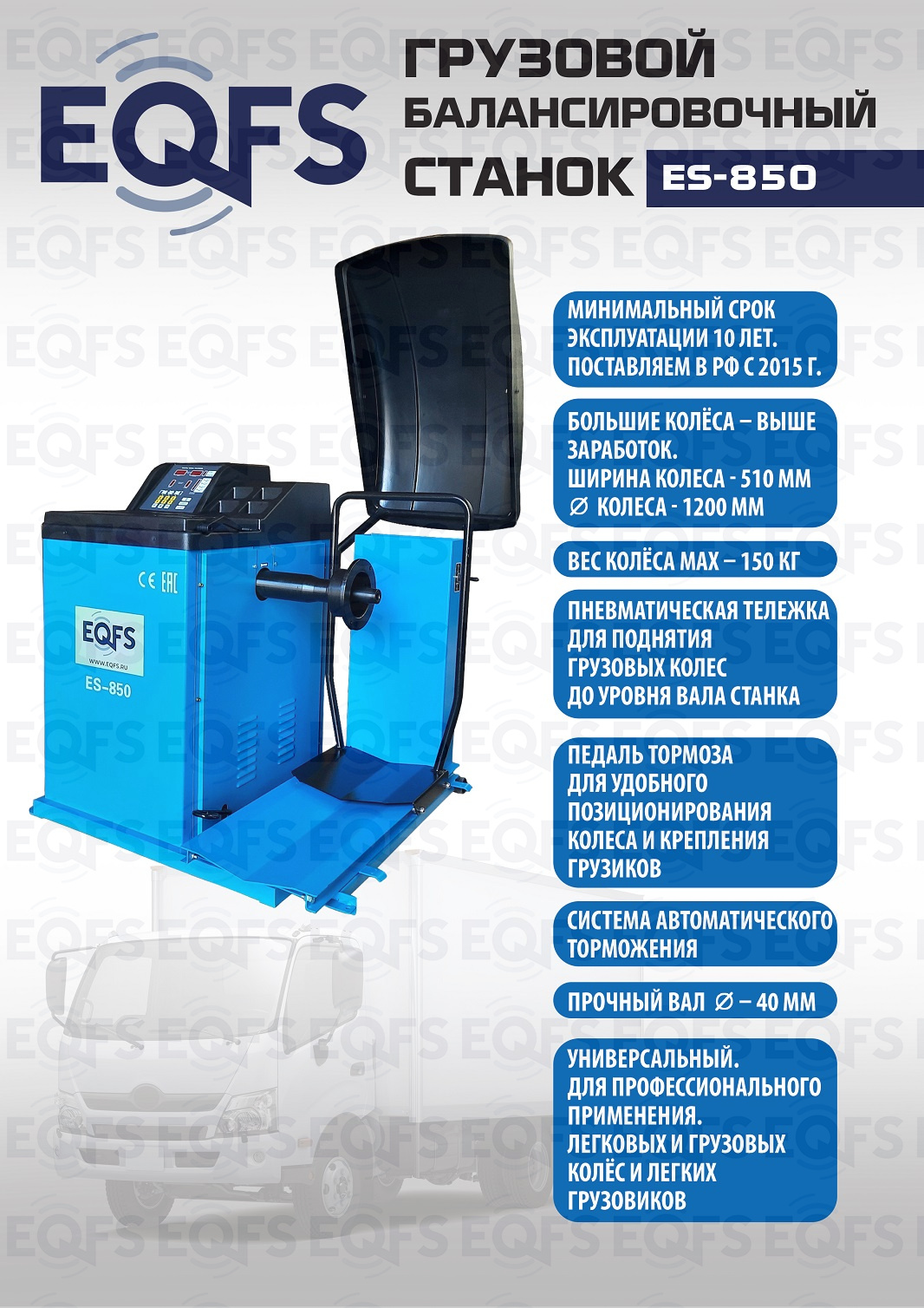 + ES-850 Балансировочный станок 380V. Балансирует грузовые и легковые диски - 13-24” ширина 1,5-20”, Колесо «в сборе» - до 1200 мм, вес до 150кг. Напряжение 380В. Встроенный пневмоподъемник. Балансировочный станок для шин легковых, грузовых автомобилей, автобусов, микроавтобусов и т.п.