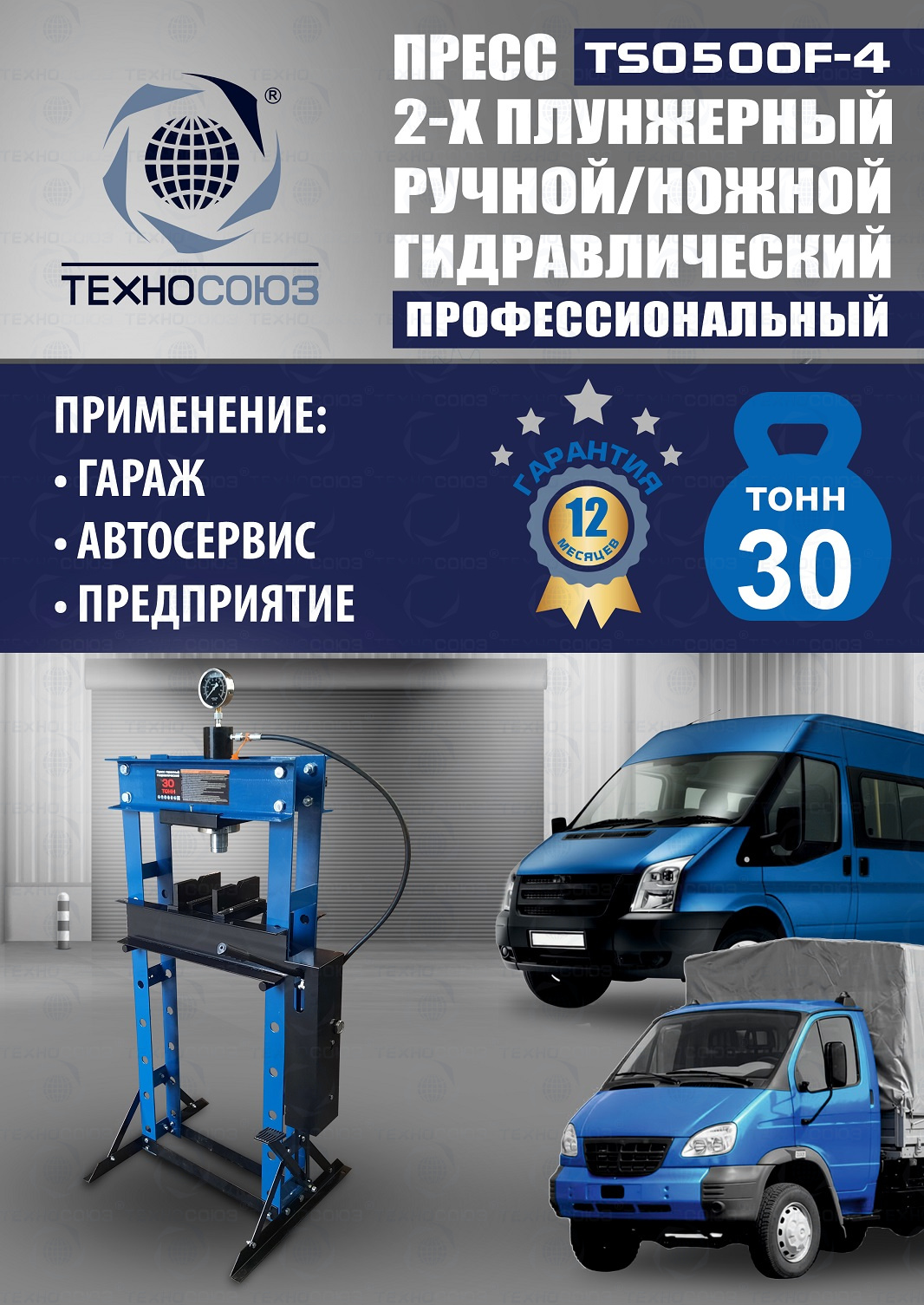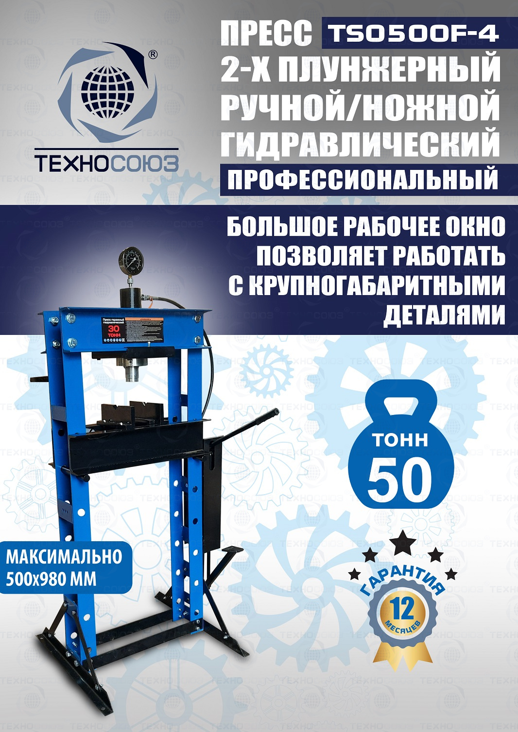 TS0500F-4 Пресс гидравлический ручной/ножной, 30 тонн