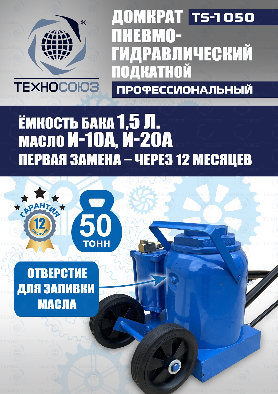 Технические особенности TS-1050 грузовой подкатной пневмогидравлический домкрат 50 тонн: